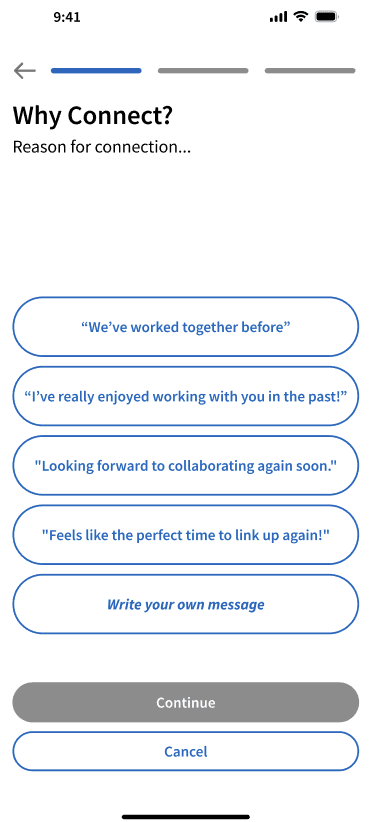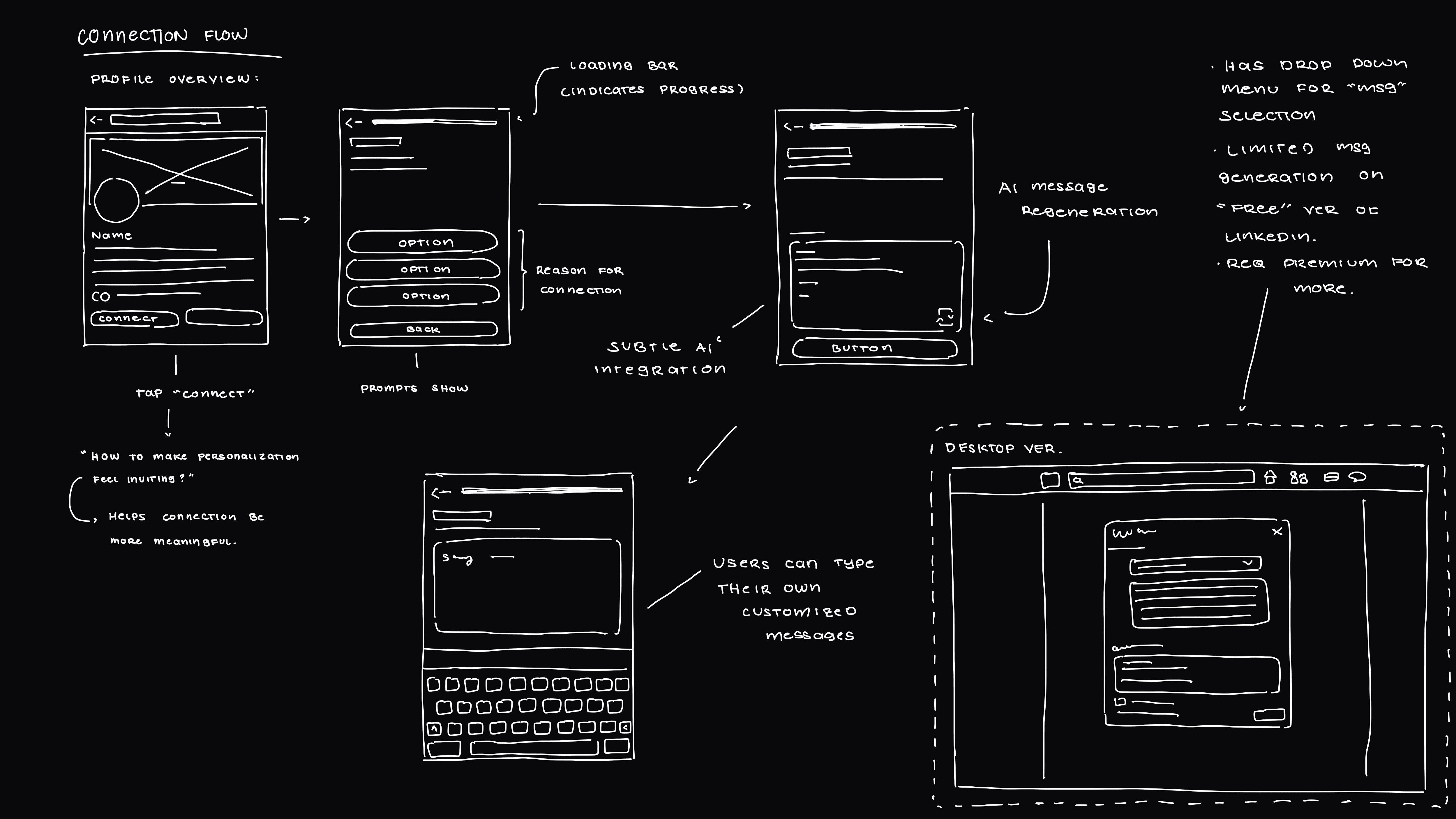This concept was grounded in the idea that meaningful professional networking is a behavioral challenge, not a feature gap. While LinkedIn provides tools for connection and messaging, the experience heavily optimizes for speed—often at the expense of intention.